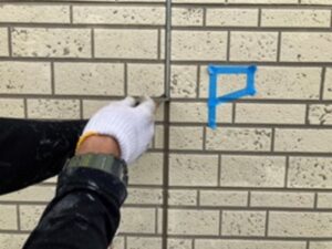 今回のお宅では、築12年ほどが経過しており、外壁の目地部分にシーリングのひび割れ・肉やせ・剥離が見られました。