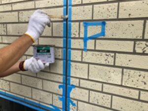 目地周辺をきれいにテープで養生し、密着を高めるための「プライマー(接着剤)」を塗布します。